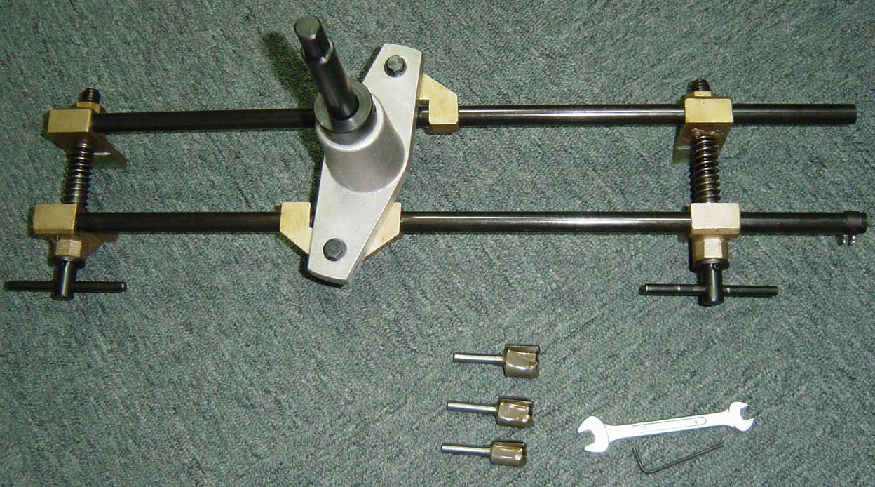 while the upper clamp can slide up and down to suit the required length of mortice. The clamps thus perform the dual role of providing limiting stops for